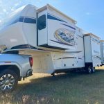 • 38 ft fifth wheel with multiple slide-outs for expansive living space