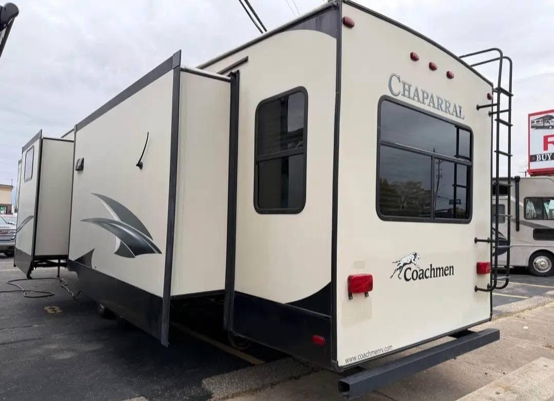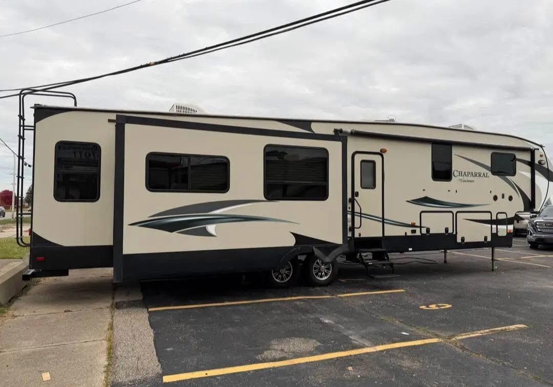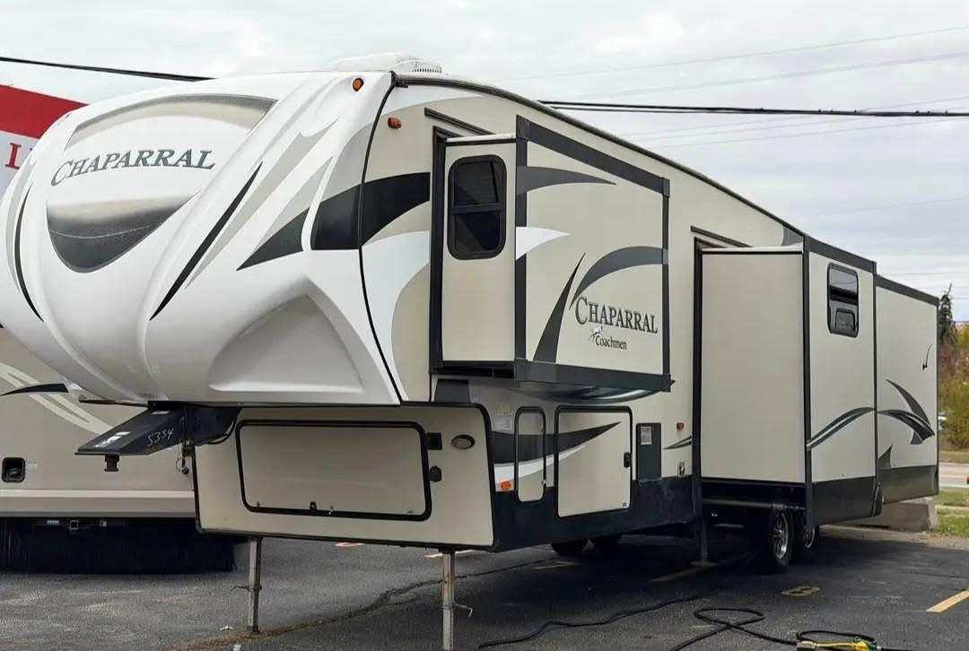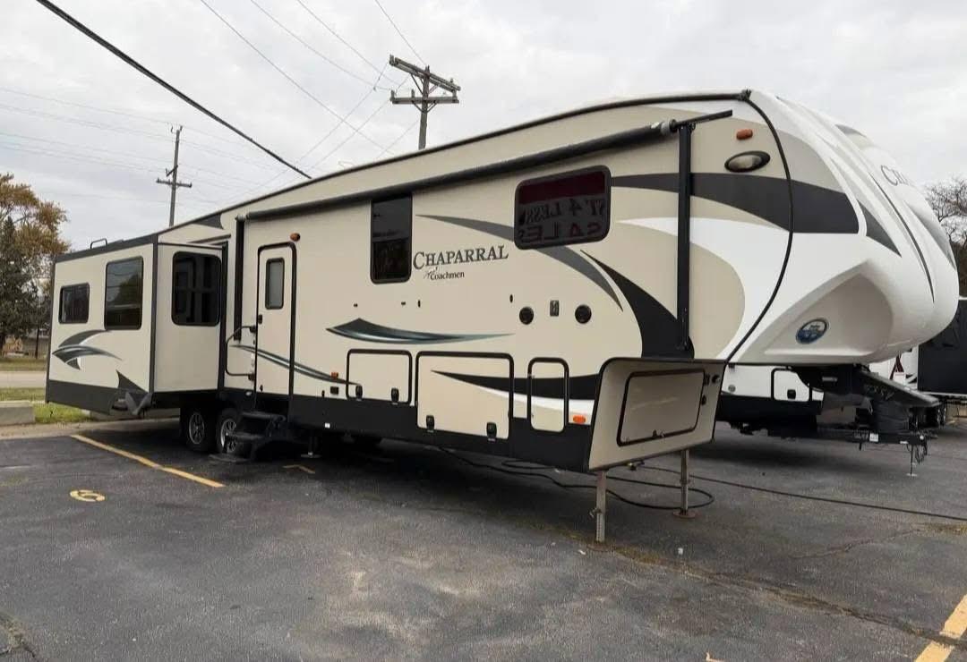 At Affordable Used Campers, we make owning a fifth wheel attainable. This 2017 Coachmen Chaparral 390QSMB offers a rare bi-level floorplan, four slide-outs, and sleeping space for up to eight—making it ideal for families, extended travel, or full-time living.